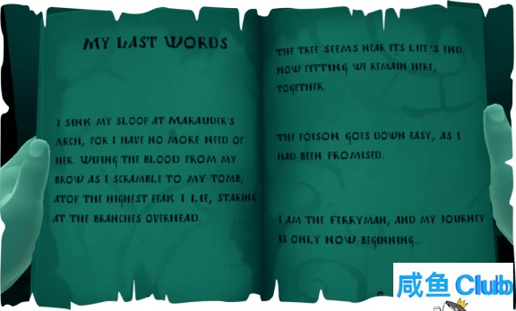 您将在一个不寻常的地方开始这个故事。前往幽灵船并与轮渡人会面。坐在他旁边的是故事书。