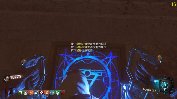 然后按下专家武器按钮(默认Q),将DG4取出,然后按下右键,插在蓝色方块上。