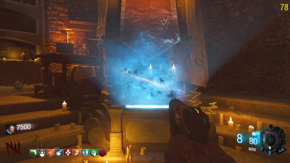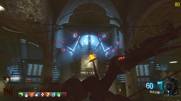 然后来到传送机位置。用远古之怒攻击传送机上的6个小球。