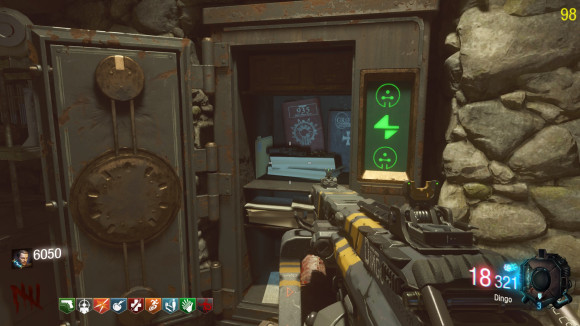 我们来到传送机房间,看到保险柜以及打开了。我们拿起那两个保险丝。