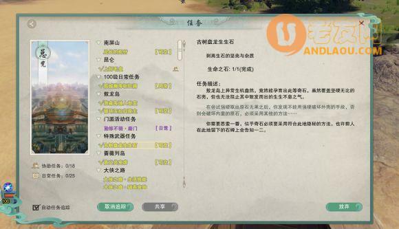 首先,有了生命之石后,右键接任务,然后去敖龙岛 老六(10人也可),见此图位置,会看到任务的图标,点击它,一直接任务,完成,直到没了任务图标。