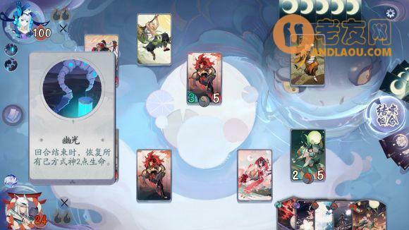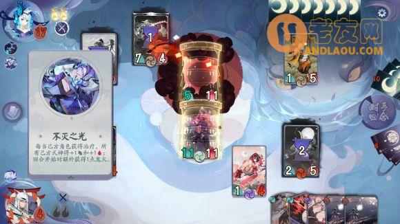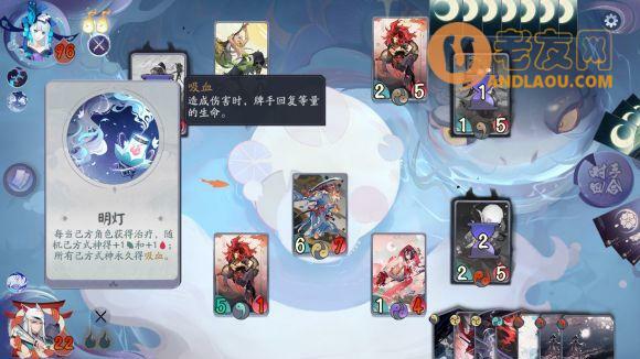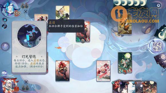 第二阶段灯姐会给自己的式神加上吸血buff,看起来很恶心其实也就那样,十个回合养起来的犬神不怕任何式神,在灯姐虚弱的时候就可以尽量打血了
