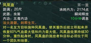 凤凰蛊:简称凤凰,给挂上的队友或者自己一次原地复活的机会。使用时机:听团长安排