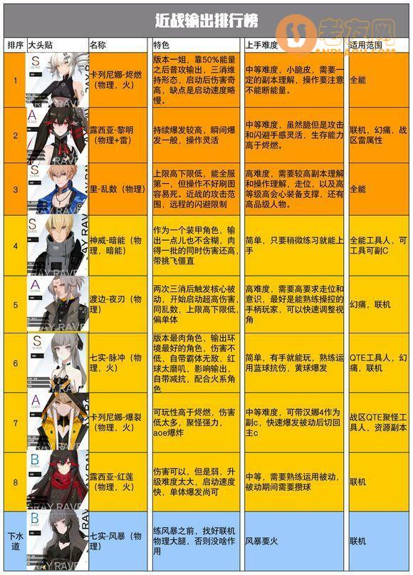 二、本游戏除了七实-风暴,暂时没看出来哪个角色到后期会没用,并且强度都是相对的。毕竟动作游戏,操作会对角色强度有很大的影响。并且同一个人操作,面对不同的图,角色的强度也不同。举个例子。**作烬燃,通关幻痛难度3需要13秒,用乱数通难度3需要7秒;**作烬燃通关幻痛难度5需要23秒,用乱数需要26秒。所以,由此可见同操作,同副本,不同难度也会影响角色强度,所以大家不必纠结抽到的角色强不强,要变强,一个是看角色练度(战斗力),二就是看操作熟练度,三就是不同的图有不同的最佳角色。