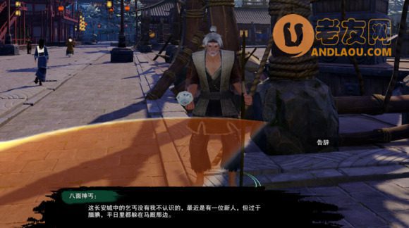 跟烧饼铺老板对话完之后找到【八面神丐】对话。