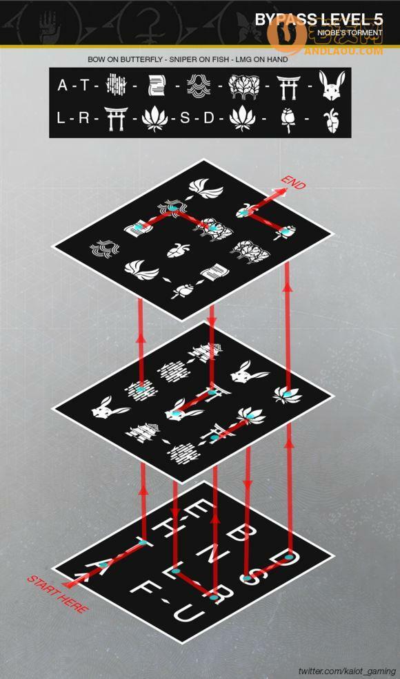 机枪射「AT」→狙击射「竹」→弓箭射「纸片」「波浪」「三棵树」→狙击射「门」「兔」→机枪射「LR」→狙击射「门」「莲花」→机枪射「SD」→狙击射「莲花」→弓箭射「玫瑰」「心脏」