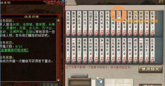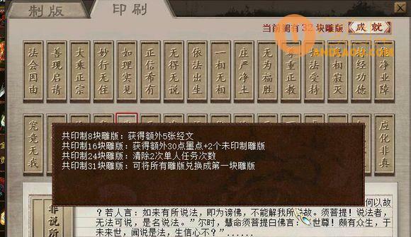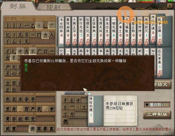 先领取单人的法会因由。开启后会送一张法身非相。然后去杀小怪,出来妙行无往后印刷4张使用。等离色离相出来,然后印刷4张使用。最后单人任务做法身非相。把所有经文弄出来后,选择墨点少的优先印刷。再印刷界面有说明。所有板块出来后,法会因由要印3张,答题大概10分钟。7回合开始答题,答对会亮灯,68回合结束。如果失败了,再印一张重新答。