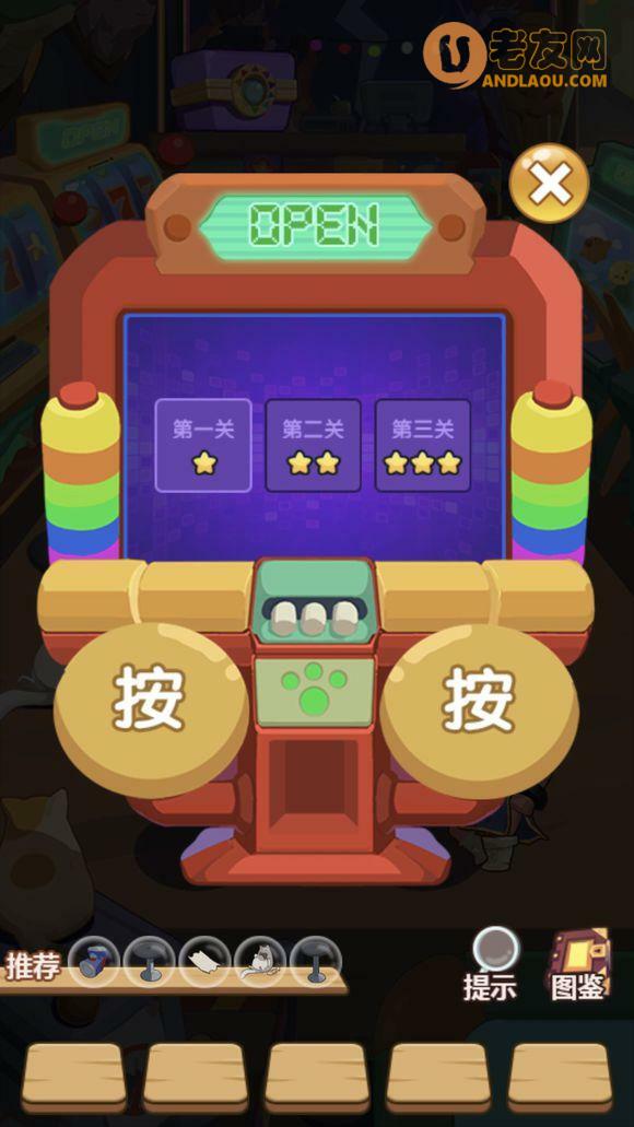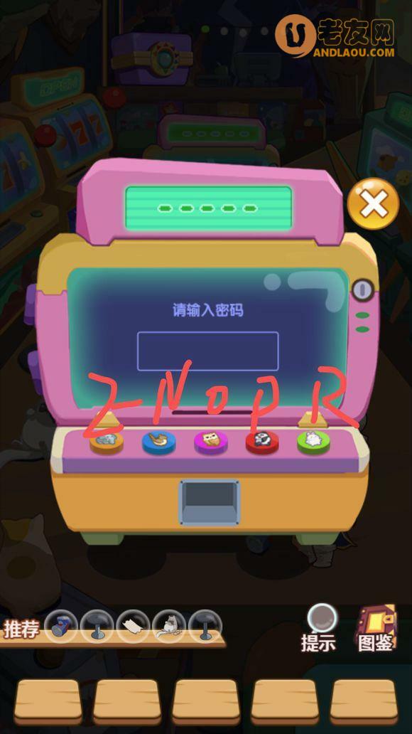 5.密码机器普通玩法:首先,密码为“open”,结合1中npc的字母对应,推测出按钮为“猫头鹰O,熊猫P,大象E,夜雀N”。打开机器后,按下面五个按钮可调整灯光颜色,开局全白出一号三角形;保持白色不变,从右侧数第五个灯调整为绿色出二号三角形;保持白色不变,从右侧数第四个灯为绿色,第五个灯为红色出三号三角形,以此类推。可以对照下方按钮顺序,记不住的话也可以对应机器上方的彩灯滚动顺序。十个三角形收齐以后,可以打开彩灯旁边的箱子,收集新的道具,可出收藏品破碎的三角形(道具掉落:1号三角形-代言VCD)