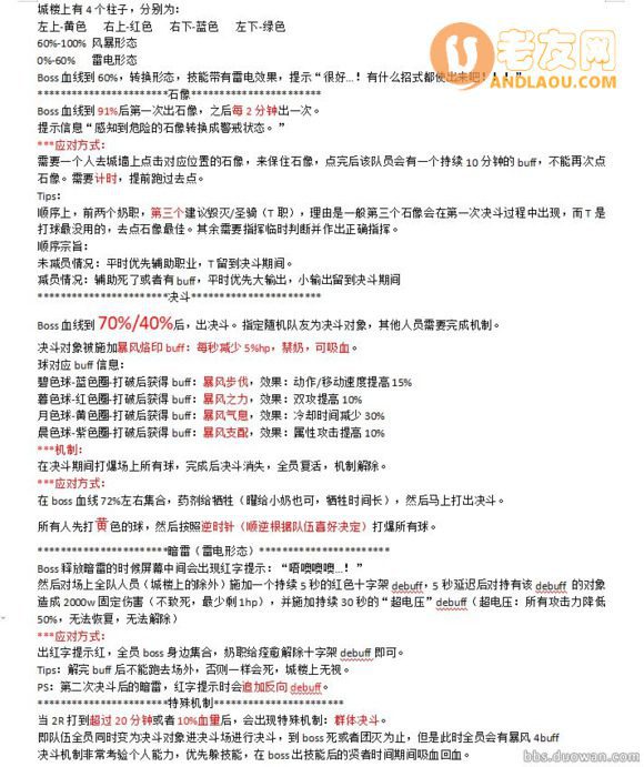 两两分组,提前跑到指定的四个方向的位置,被随机迷到的队员,buff栏会有红色爱心,本人身上会闪金光。此人不要按任何技能,包括平A,蹭绿**uff就行,debuff持续到boss换血结束,结束前都不要输出,不然会打死一片队友,其他被安排在boss两侧的队员,跑位到boss头部或者尾部,时间充裕,此时可以全力输出,出现蠢蠢欲动时注意不要被boss蹭到。