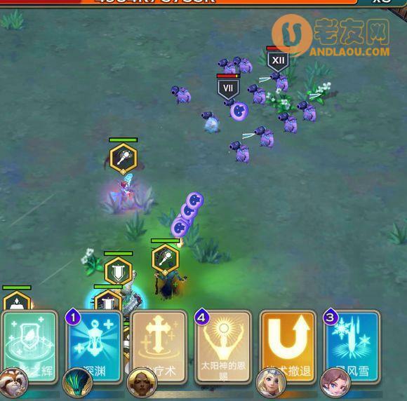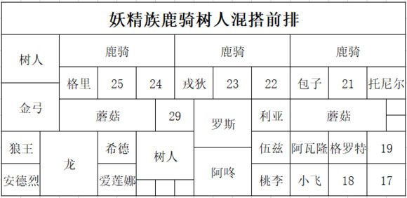 三队鹿骑两队树人比较适合兵位还不算充裕的玩家,如果觉得左侧扛不住可以把安德烈换莱奥。格里罗斯带圣甲虫。