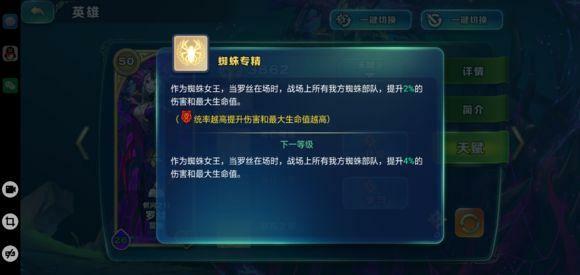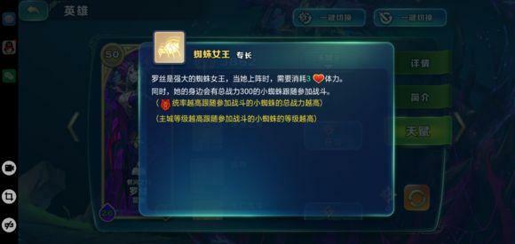 罗丝的天赋技能,这种技能不用学,也无法遗忘,天生自带。此等于开局多带了一点前排,小蜘蛛吃甘的光环以及巫妖科技