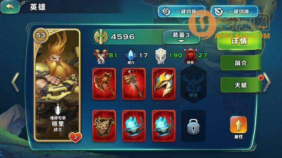 野战工会战等打属性的战斗中,格里以抗揍和堆属性为主,像竞技场这样不看四维属性的话,防具这里可以选择穿戴布尔凯索胸甲,钢铁壁垒效果+1。
