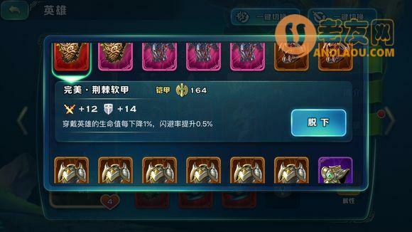 防具可以穿新出的装备荆棘软甲,作为一个吸引火力的前排,增加生存率就等于为后排提供更多的输出机会,如果战士龙套比较多的话,也可以给格里穿一套。