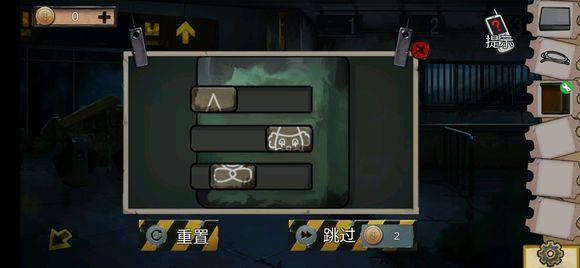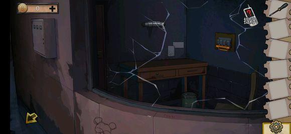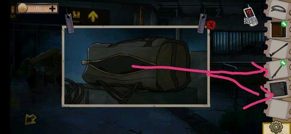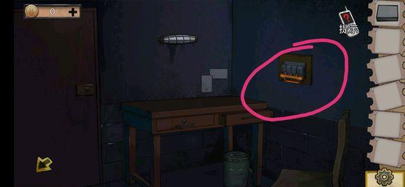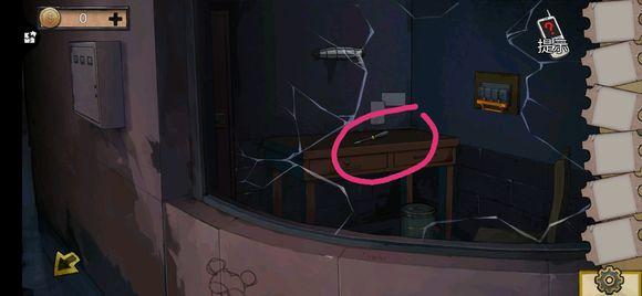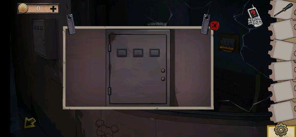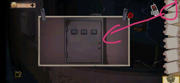 点第三张红圈得到第四张图片,点第三排,点到中间,再点第一排,箱子打开,拿到钥匙,去门卫,点左边抽屉,用钥匙打开,拿到半边钳子,两个半边钳子合在一起