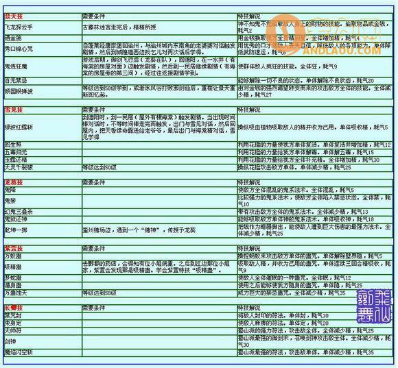 特技:是每个人特有的技能。我方五个人每个人的技能都不同。一些技能是角色初始(如龙葵的鬼禁)。一些技能需要完成游戏中的剧情(如雪见的绿波红露斩)。还有一些技能是人物升至一定等级后自然学会(如紫萱的万蛊蚀天)。(详见附图)