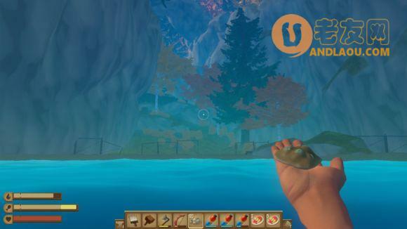 围着岛游找到这个一个登岛点,这里上去是母熊窝,母熊窝里能拿到砍刀蓝图和一把砍刀。