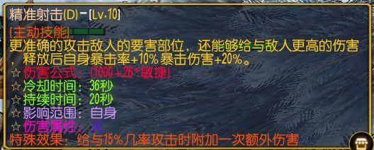 特殊效果:15几率给予额外伤害。这个效果即使不开主动也存在,就是输出时的红字伤害数字,技能也可以附加此伤害,而且这个伤害貌似也可以暴击