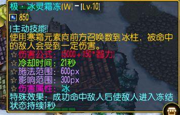 W冰灵是素素唯一的秒控,常用来打断各种boss抬手逃命以及被动加15%魔抗配合圣者吃一些boss的技能
