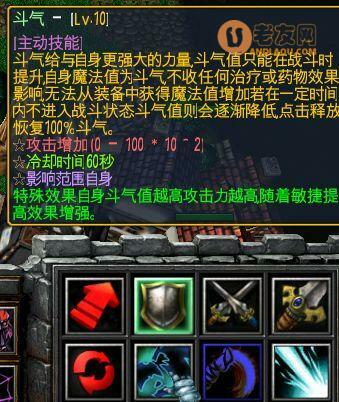 绿字效果:斗气数值最高500点,每秒减少1点,普通攻击可回复1点。斗气值越高,提升的基础攻击力越高。敏捷属性可额外增强该效果。