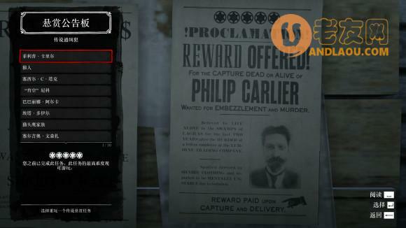 好,进入正题,首先我们选择第一个传奇通缉犯 菲利普.卡里尔,在5星难度下,只要一次机会,死亡就会重新开始,这点相信大家都知道