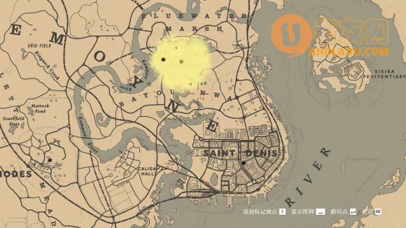 进入正常后,我们打开地图,发现有一片黄色区域需要我们去搜索,如果不是5星难度的话,就会有3个黄色区域,5星难度下,只有一个大范围区域给我们进行探索