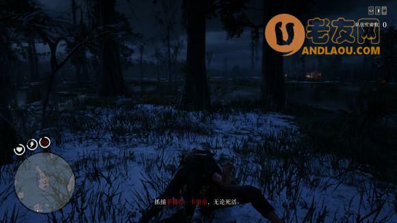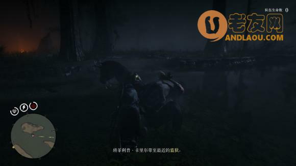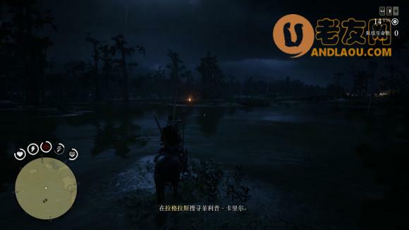 绑起来后,迅速骑马离开,因为在5星传奇难度下,周围的鳄鱼不显示红点,周围大概会刷10几只鳄鱼这样,我们跑到另一个小岛,慢慢的把来袭的鳄鱼杀死,还有周围的弓箭手,清干净后,就可以靠近,并且把犯人放到马上了,这里也是本悬赏的唯一难点,非常考验枪法和个人的心里素质