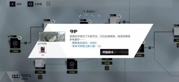 伤害需求较低,笔者使用1000战力暗蚀硬闯,耗时2min半通关。值得注意的是,其中一个小怪是自律性警卫,其子弹会旋转,且必定逆时针旋转。