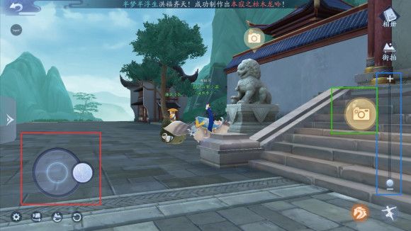 例如:红色=旋转角度 蓝色=右侧滑条 绿色=拍照