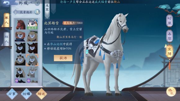 精骑照夜 获得坐骑北冥踏雪并骑上拍照