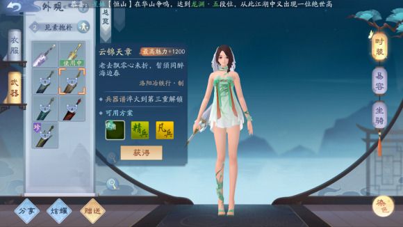 云锦天章 兵器谱淬火第三重获得武器外观云锦天章进行拍照