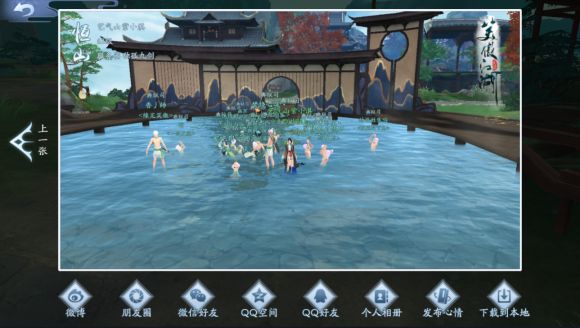 策马同游 帮会温泉人最多快来拍他们的裸照吧(* ̄︶ ̄) 左下角相机-相机设置-角色-路人,其他玩家都勾选