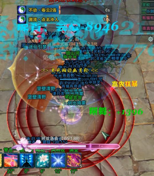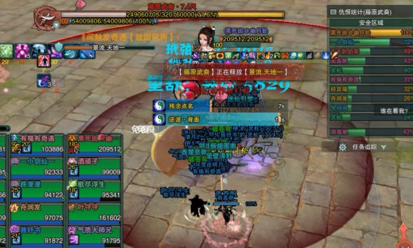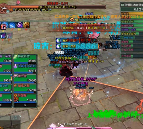 看到boss出激流了记得离开人群(如果不是点名自己的话),否则点名的人不够聪明的亚子的话就会导致boss破掉一群人的盾。 (上图为反面例子,因为被boss点名但是距离人群不够远导致一群人的盾全被破掉了)