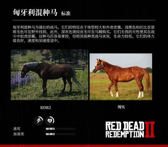 游戏中约翰·马斯顿有一匹匈牙利混种马是银尾深骝色的,罕见的深灰色斑纹可在马厩购买。