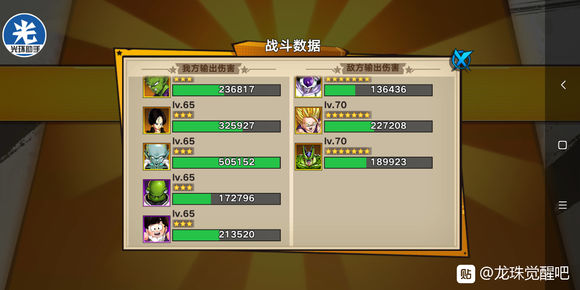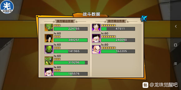 第六关,福利关卡,,记得手动(追求稳得可以光环0倍),前排2个雅木茶+后排80级与75级的咕噜多+75级小悟饭,最关键的就是别忘记放上咕噜多,下一关要用