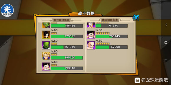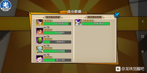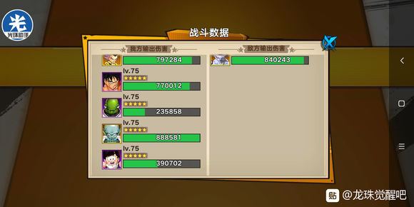 第五关,弗利萨关,光环0倍+手动,然后75级的咕噜多+75级的雅木茶+75级的小悟饭为下一关做准备,剩下一个前排+后排就是控制或输出即可(这关可刷10-20钻石也可不刷,看脸)