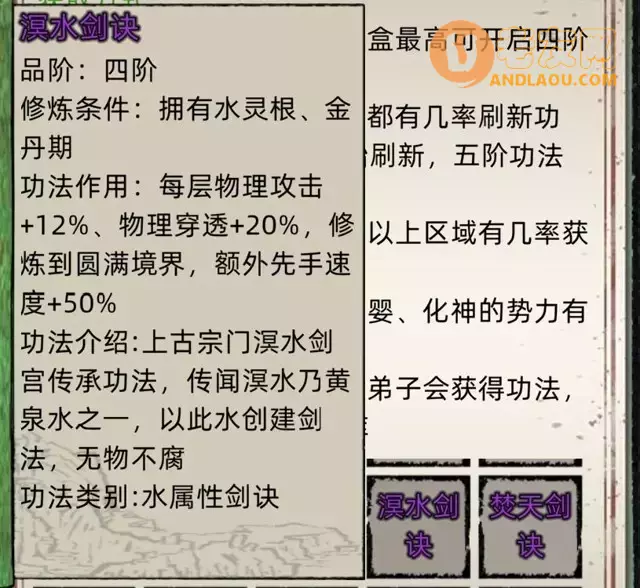 五阶的葵水真经上部,每层加修炼速度10的同时,还加30%生命,兼顾生命和修炼,战斗修炼两不误。等到化神圆满再换其他通用的五阶功法都行(不放图了,大家进游戏的右上角问号里面看吧)。