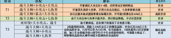 普通史诗的优势是多一条词缀,词缀加成高。不过由于本身难刷,很容易碰到极品,有战斗大师+大小攻击+七伤拳、双环绕+战斗大师之类的三攻首饰当然最好,可以不用过多考虑基础属性,如果没有其实还不如稀有高阶实在,毕竟能用的上的才是王道。当然,如果只有2条词缀且基础再攻击血量2阶段以上也是一个不错的选择。