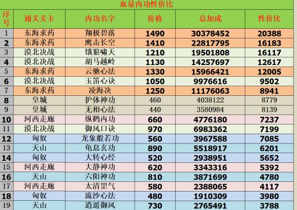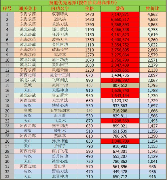 附上攻击血量性价比图作为基础属性选择参考,