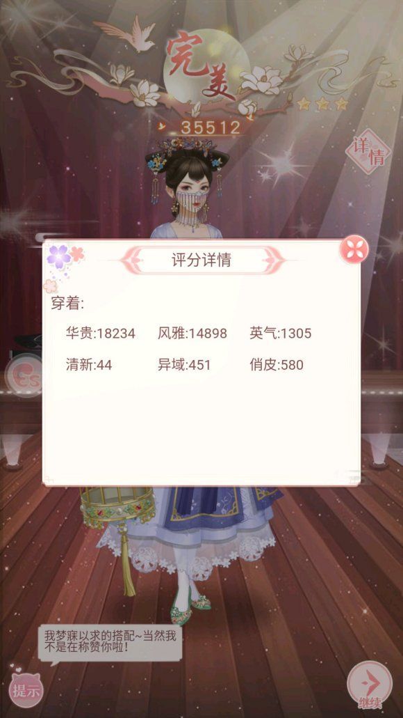 华贵/风雅。穿蓝色那套也可以过。