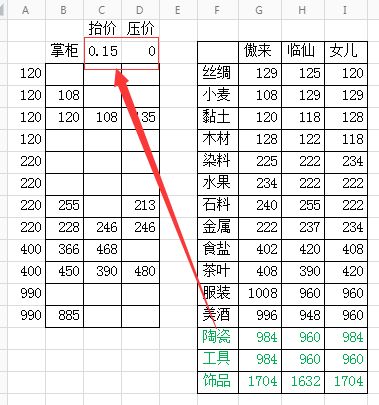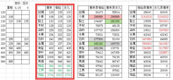 做好表格后,每天更新下各个行会的价格数据就可以了,就是改这个部分