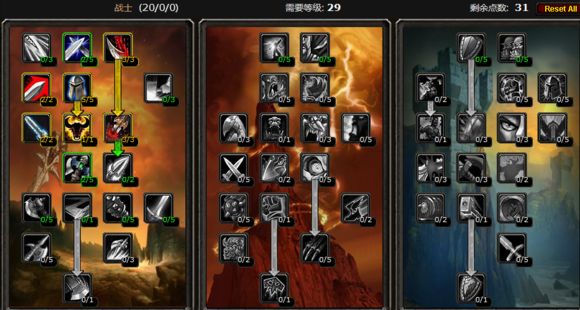 20级学习3级撕裂,反击风暴和顺劈斩(反击风暴在引到太多怪的时候开启会有很好的效果,但是它的CD时间实在太长了);