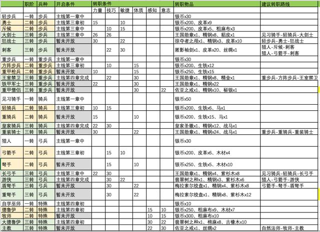 各职业转职条件