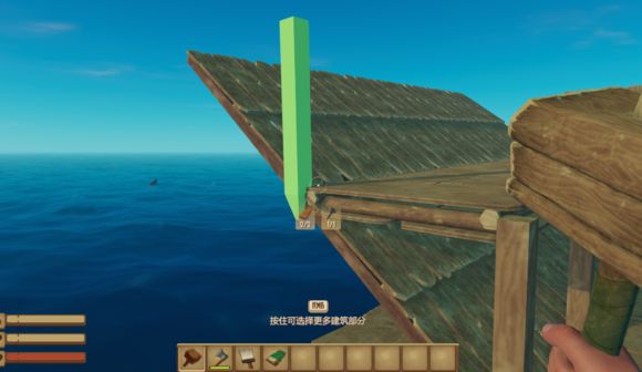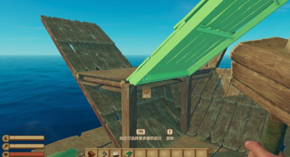 当我们想搭直梯想叠起来时,我们先造个直梯,然后在直梯子上拍个平板,然后再在平板的上面跟下面的那个直梯子对齐并建造