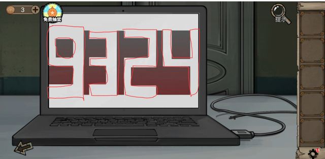 椅子上拿到布 视力表擦干净 记好顺序上下左左右上 笔记本通上电源 开小键盘输入824468(就是上下左左右上) 拿到密码 9324