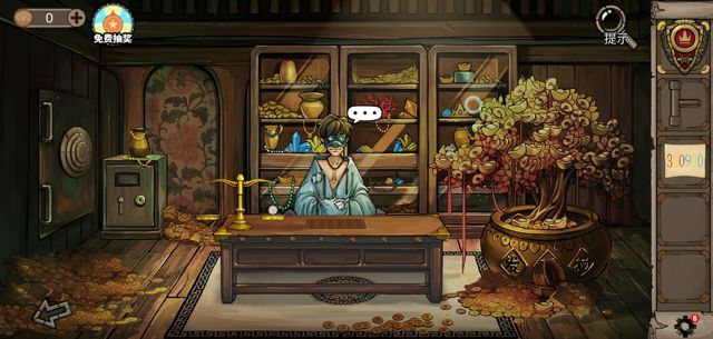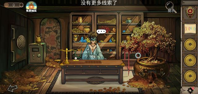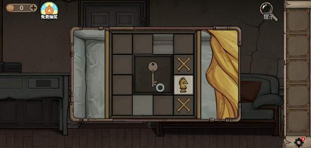 然后按照003房间的背景图案提示,在004点桌子上按位置摆放铜板。得到钥匙。