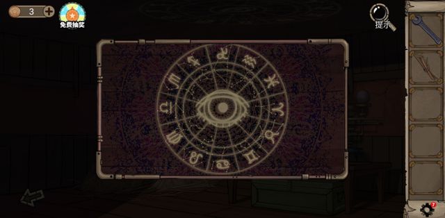 进密码房后对照天花板的图案调整罗盘,注意眼睛睫毛的方向
