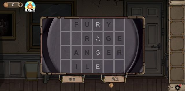 1.房间猫眼看桌上盒子单词,顺序不一致,拼对即可(最后是B开头,拼对了就不能截图了)