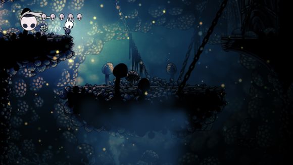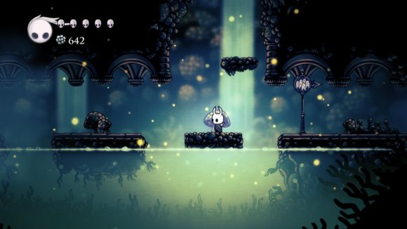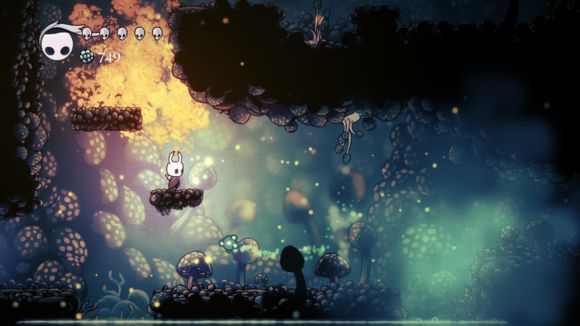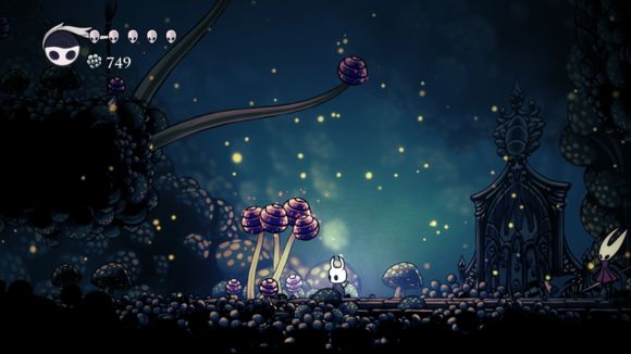 我们往右走,会看到蘑菇战士们,无视他们继续往右,然后是这样一个地方,往下走