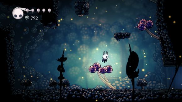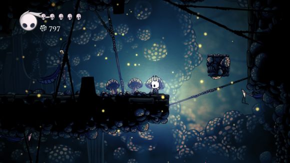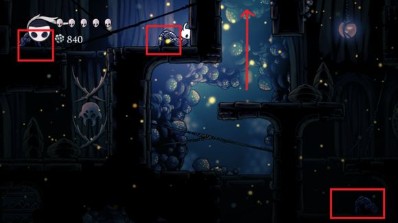 下面有两个爆炸孢子,躲过去就行了,然后往右走