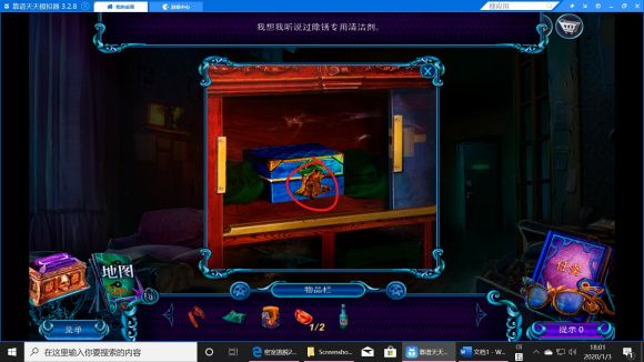 72、书柜,盒子,用除锈剂,打开,得提示。
